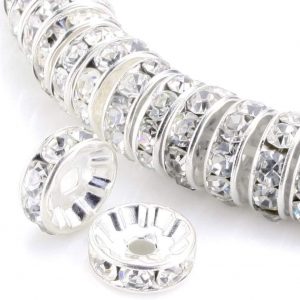 RUBYCA 100pcs 6mm A+++ Round Rondelle Spacer Charm Beads Silver Tone White Clear Czech Crystal