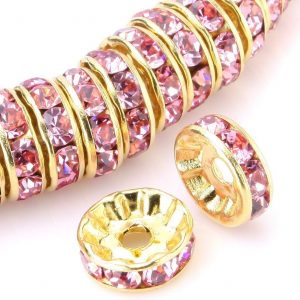 RUBYCA 100pcs Round Rondelle Spacer Bead Gold Tone 6mm Light Rose Pink Czech Crystal