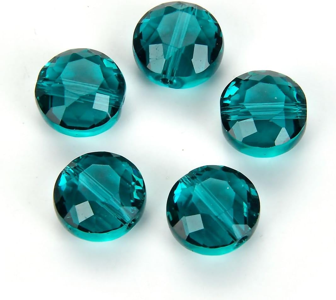 - (25pcs) Brand: Adabele; Faceted Round Flat Coin Beads, 50 facets/cuts per bead; it is a stunning addition to any jewelry design, multiple facets to increase light reflectivity, and it adds magnificent sparkle to your jewelry or craft piece, the oval shape of this twist crystal has been twisted slightly, giving it a unique rounded shape